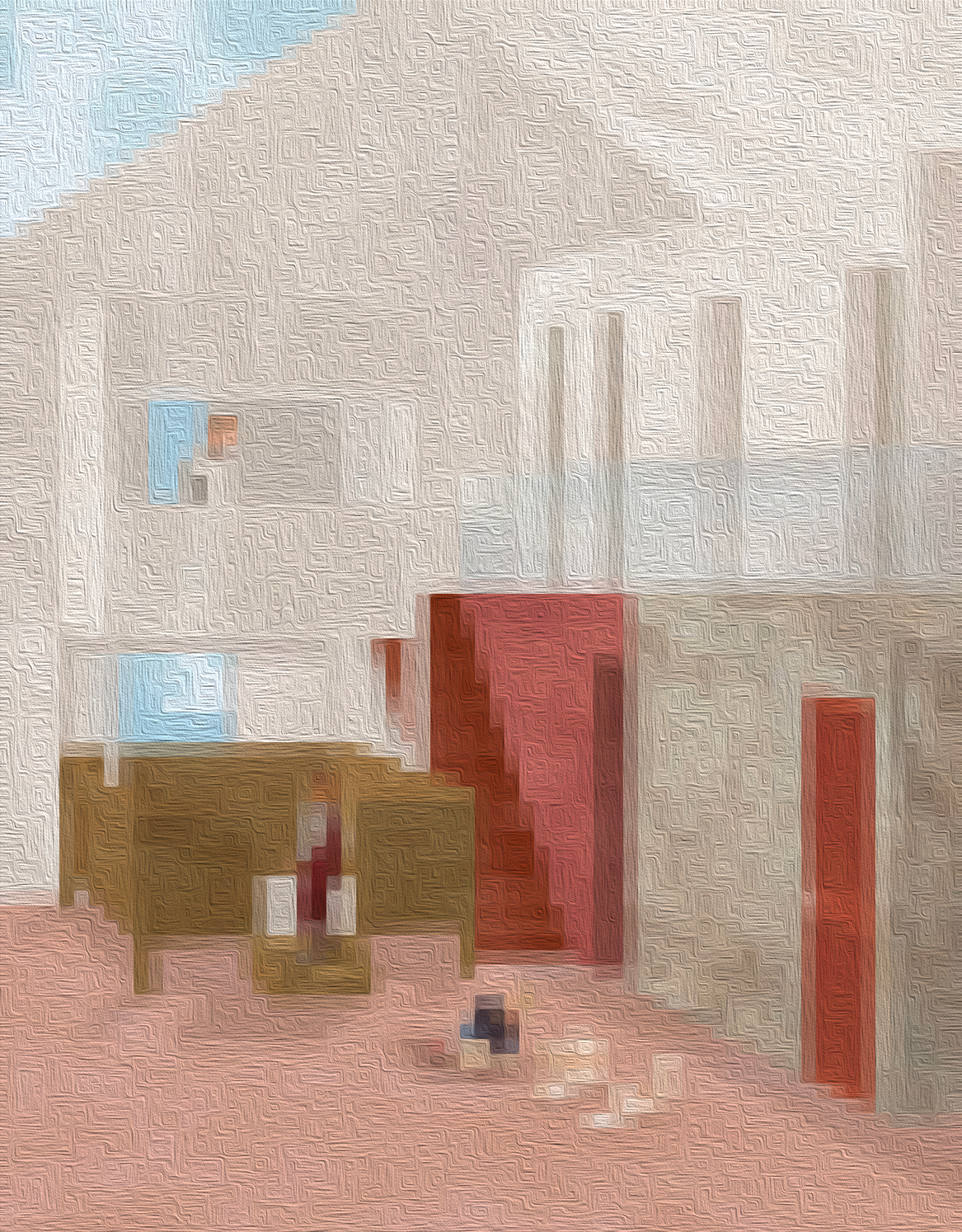 The overlap between dementia and visual impairment makes high contrast essential in spatial design. Each front door is given a distinct colour to aid recognition and strengthen the resident’s sense of connection to home.